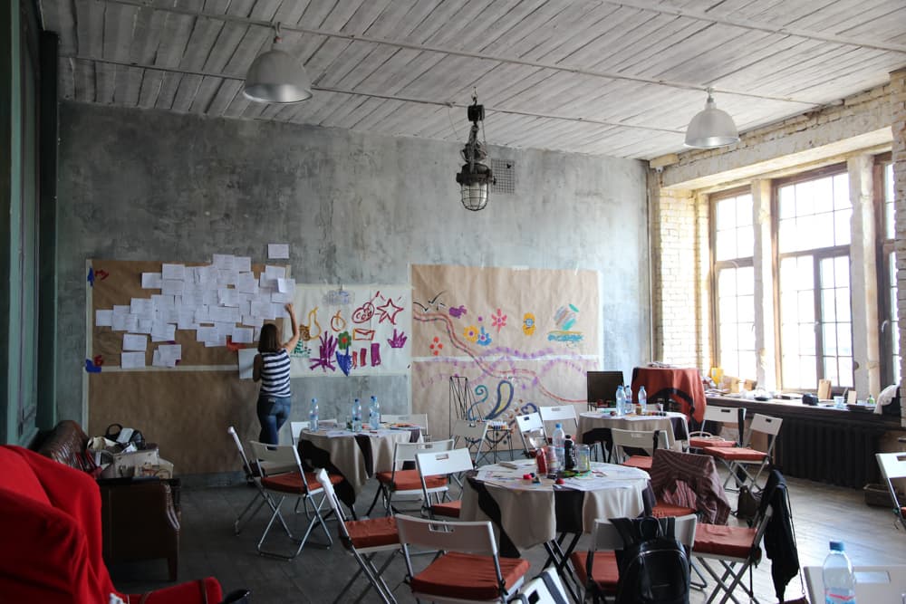 Светлое арт-пространство с мягким освещением.